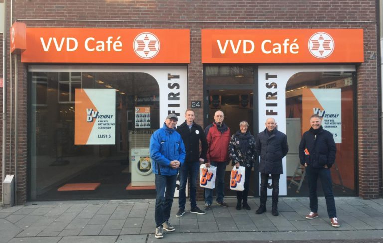 Vrijdag 2 maart wordt om 16.00 uur op Schoolstraat 24 (voorheen Expert), in Venray het VVD Café geopend. Loop gerust eens binnen. Als de vlag uithangt weet u dat het VVD-Café open is. U kunt hier terecht voor een praatje, een bakkie koffie en een foldertje of gewoon even zitten en bijkomen van de kou buiten. U kunt in gesprek met de kandidaten van de VVD–lijst 5, die op 21 maart verkiesbaar zijn voor een zetel in de gemeenteraad. Zij zijn er met een luisterend oor voor u; laat ons weten wat u vindt dat er beter kan in Venray en de kerkdorpen. Iedereen is er van harte welkom; we zien u graag!